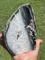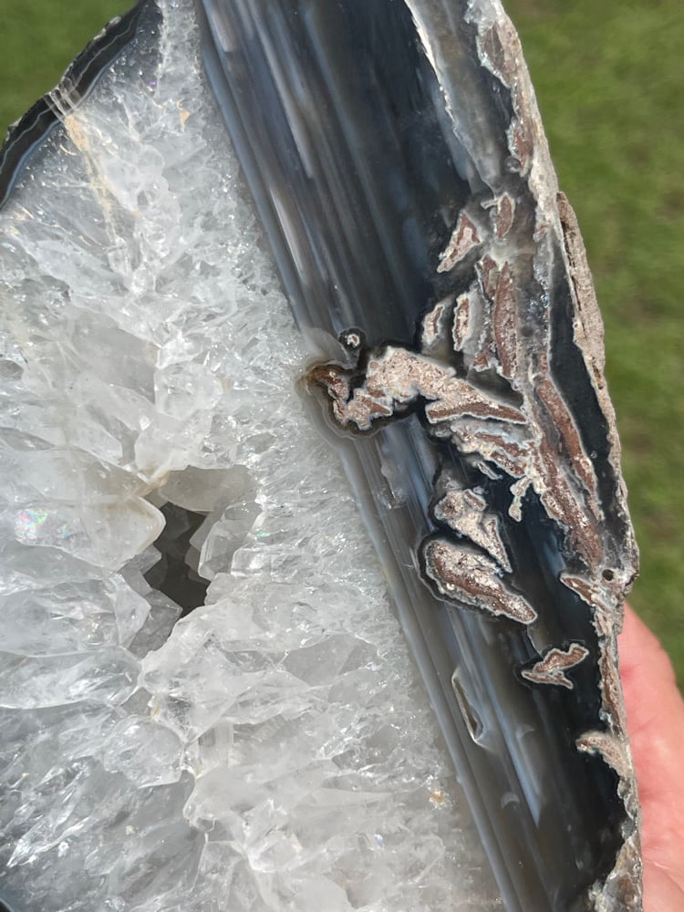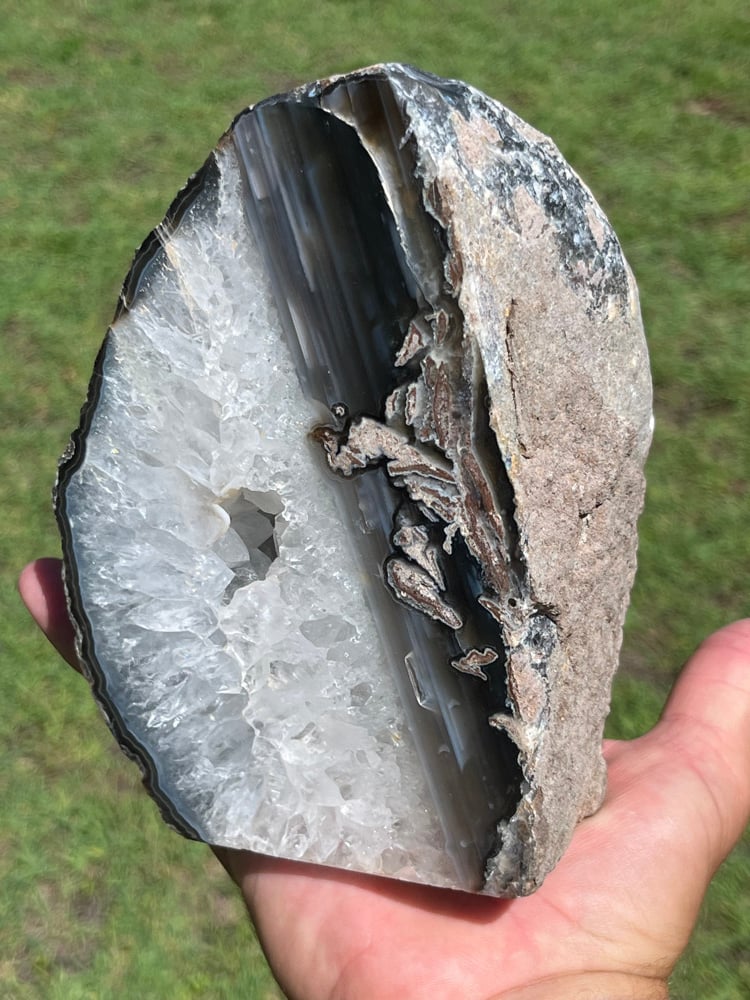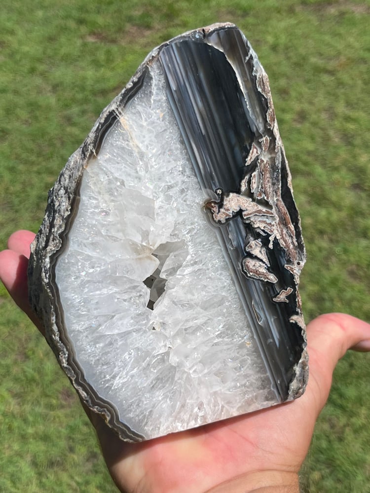 Natural Agate Base Cut Geode with polished face & Quartz cavity.