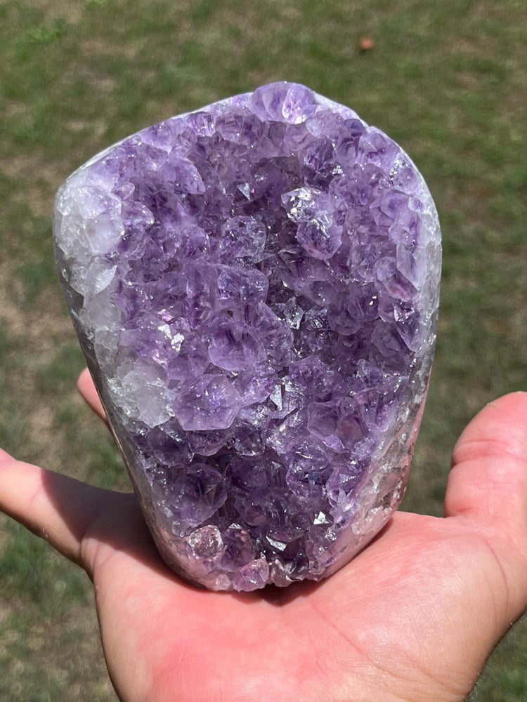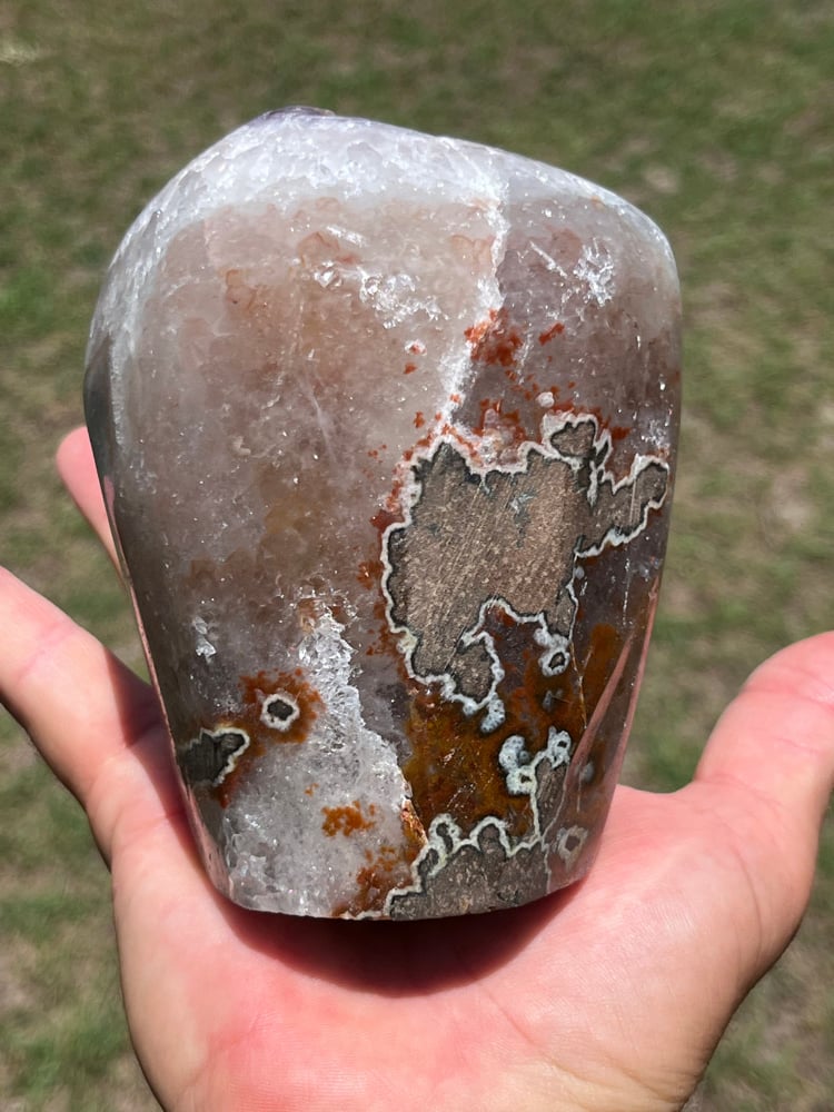 Amethyst base cut with beautiful polished Agate.