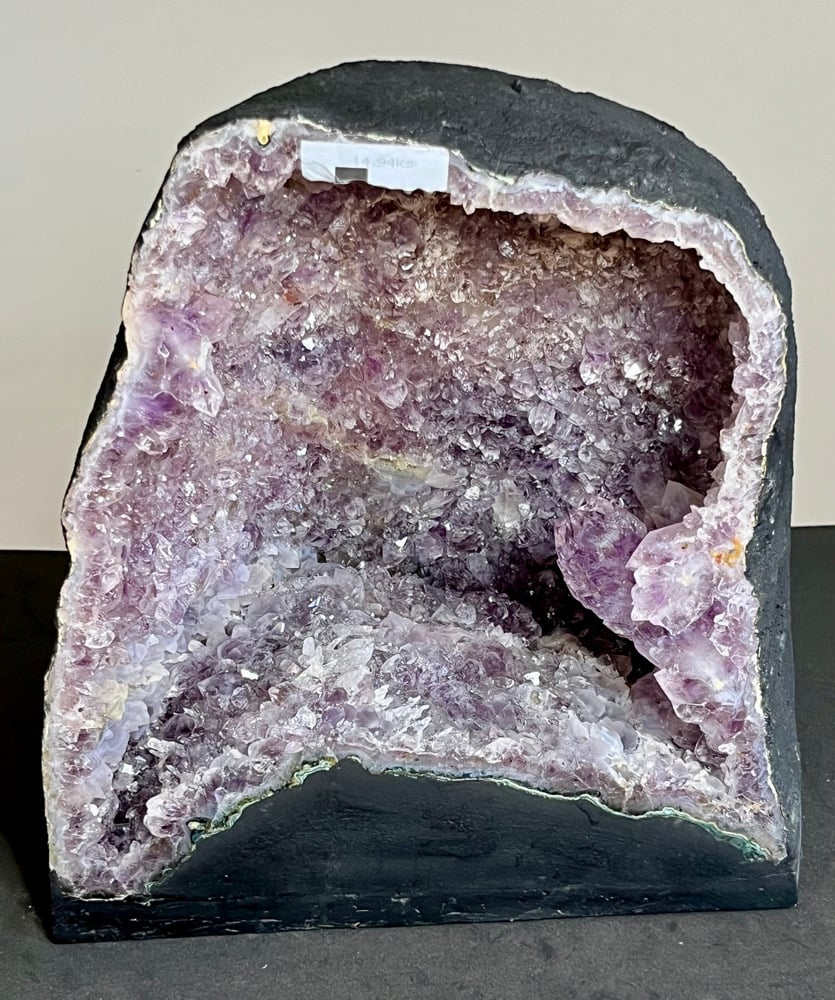 Brazilian Amethyst Geode cave with polished face statement piece.