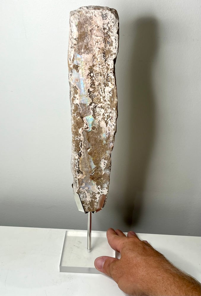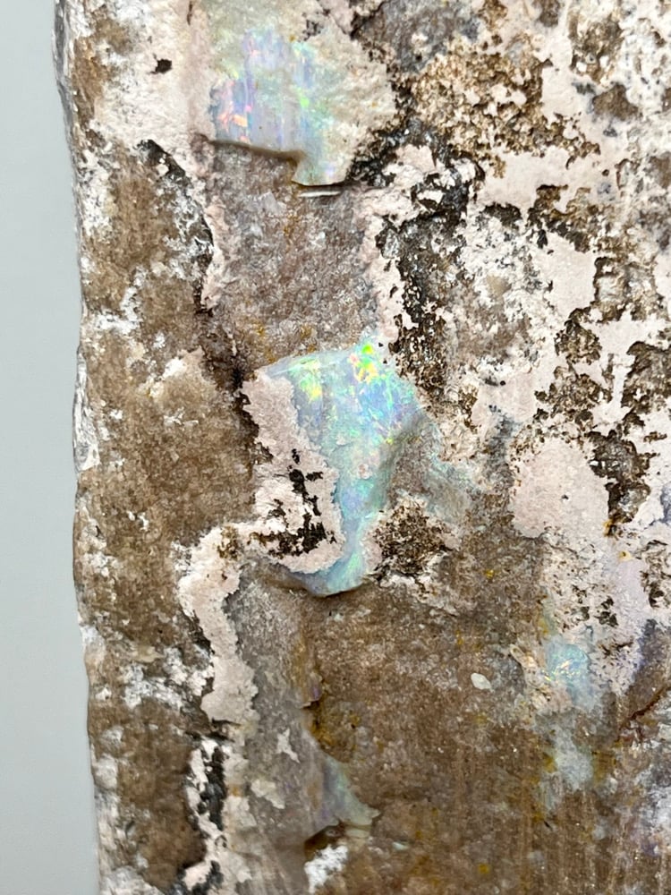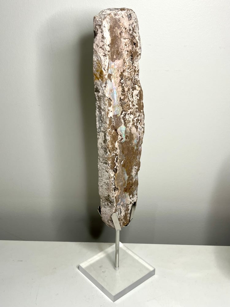 Natural Painted Lady Opal Specimen on custom removable display stand from Andamooka South Australia.