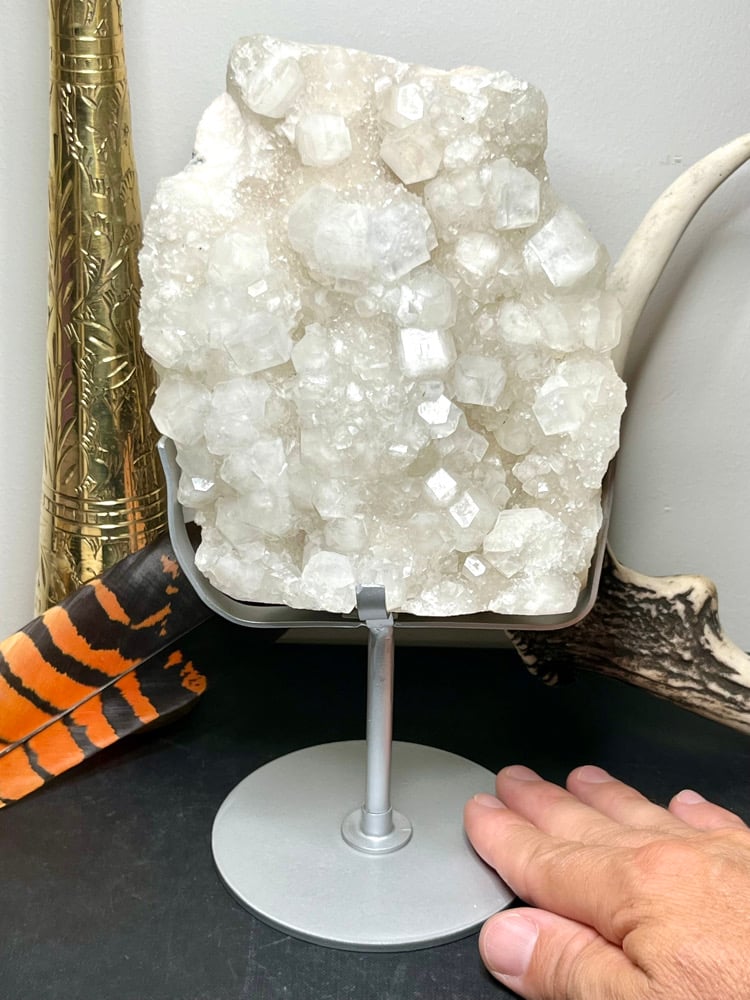 Apophyllite cluster Specimen on custom display stand from Nashik District, Maharashtra, India