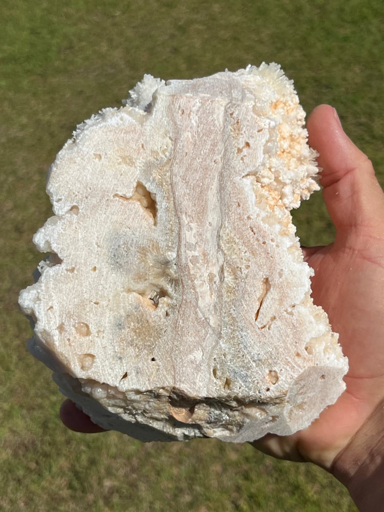 Phosphorescent UV Aragonite on white Calcite crystal reef formation specimen.