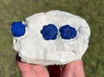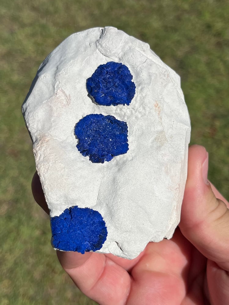 Azurite Suns on white kaolinite clay Matrix Specimen from Malbunka Copper Mine, Northern Territory Australia. Highly sought after by Collectors from this location.