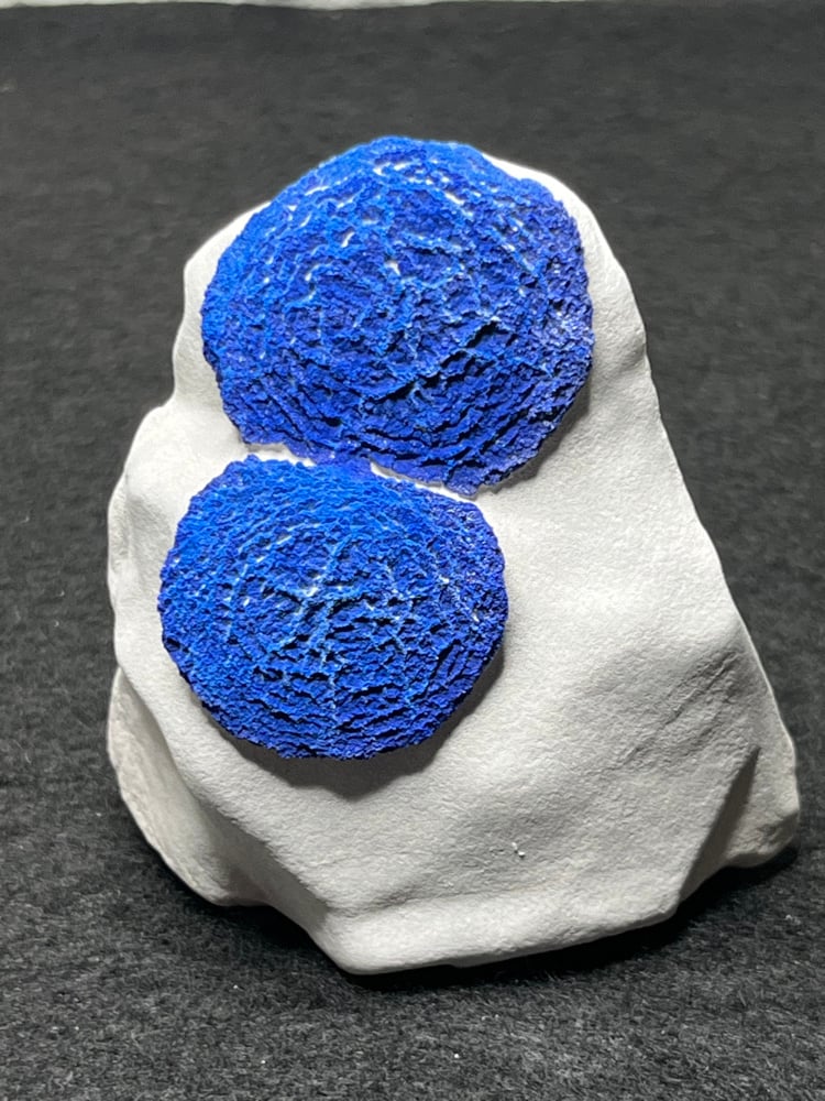Azurite Suns on white kaolinite clay Matrix Specimen from Malbunka Copper Mine, Northern Territory Australia. Highly sought after by Collectors from this location.