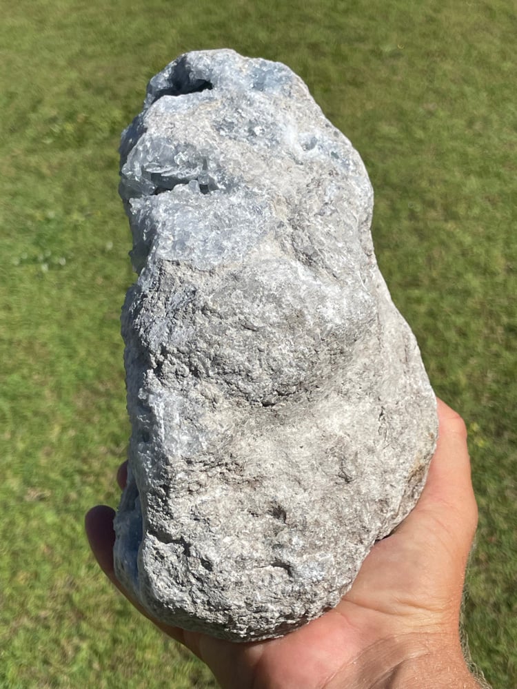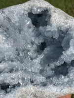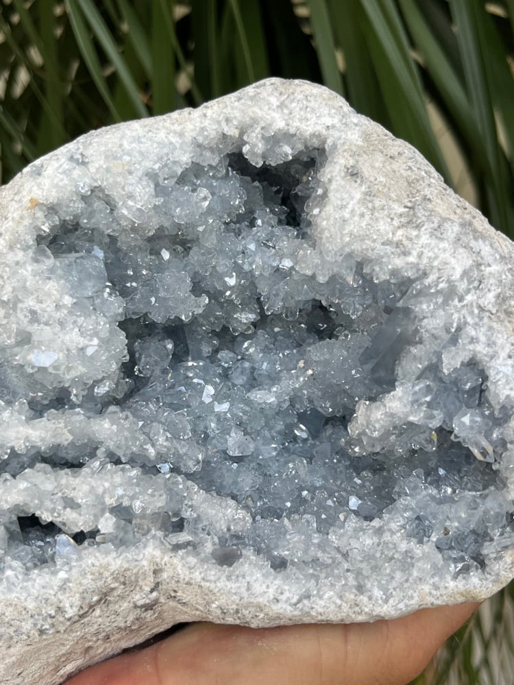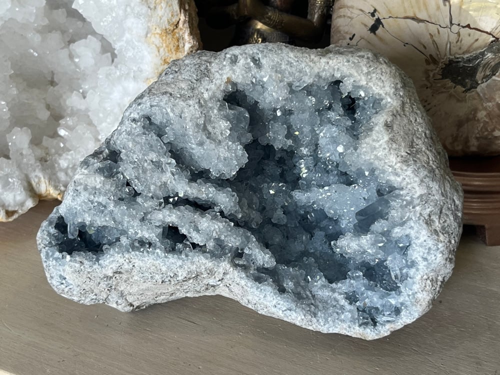 Celestite Geode from Madagascar Sits perfectly on its side to be displayed