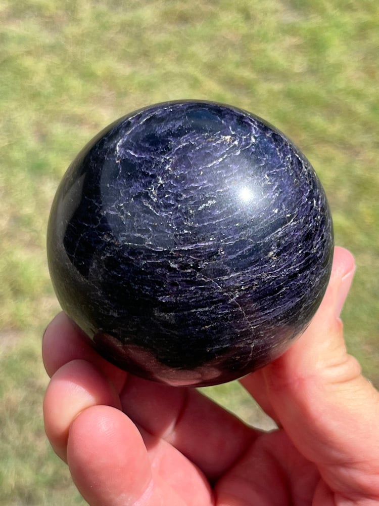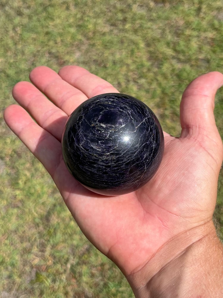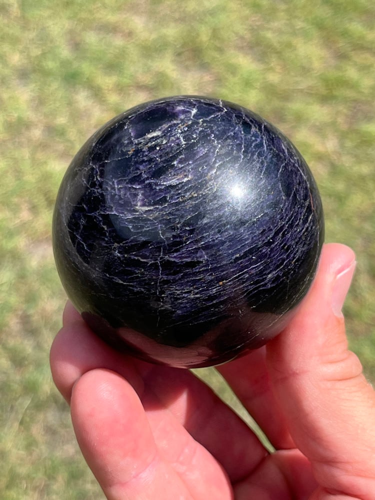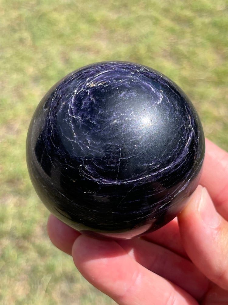 Rare Charoite & black Aegirine sphere from Siberia, Russia.