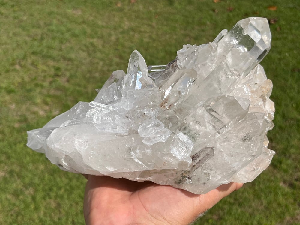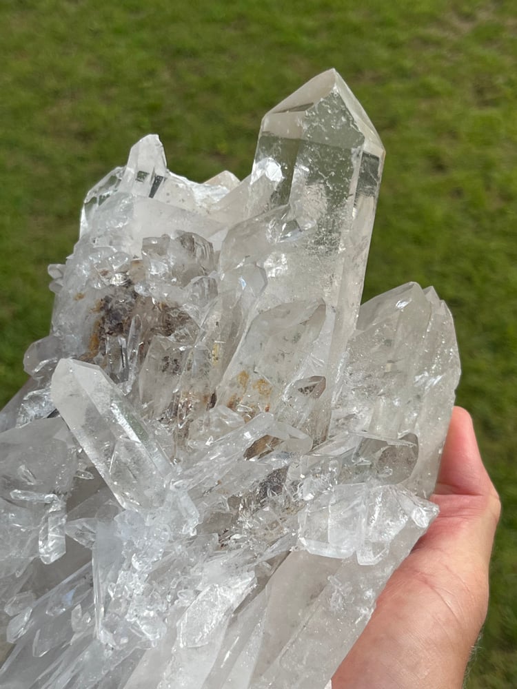 Large A grade Natural Clear Quartz points cluster with Chlorite Inclusions in places & rainbows.