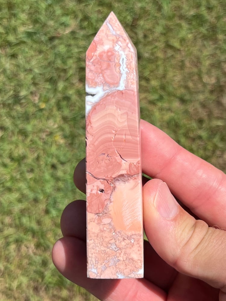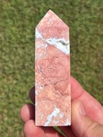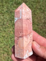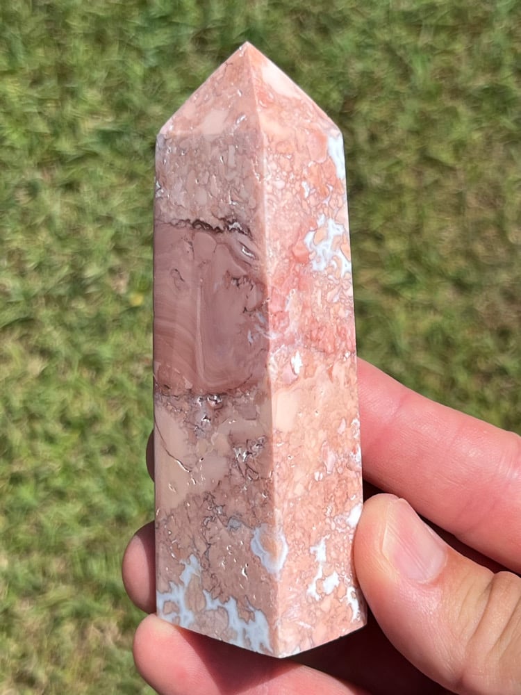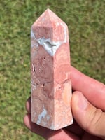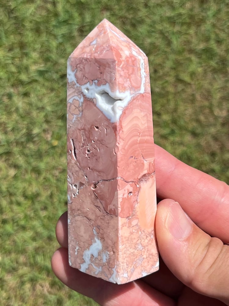 Pink Petal Agate 4 sided tower with druzy pocket.