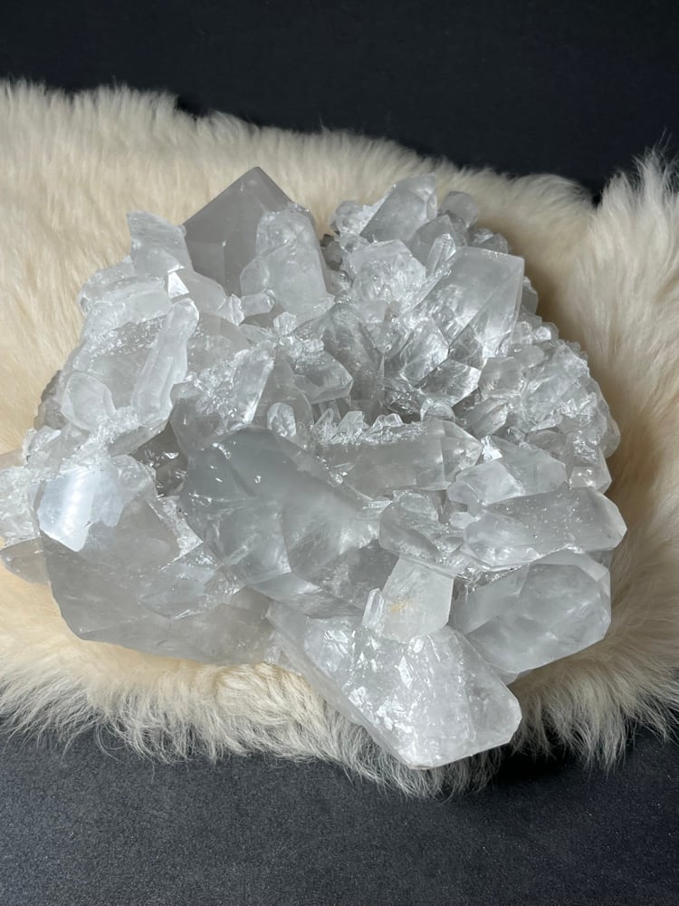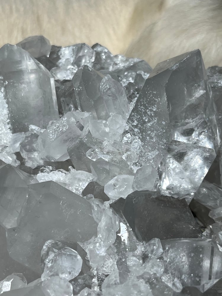 Large High grade natural Grey Phantom Quartz Crystal points cluster statement piece.
