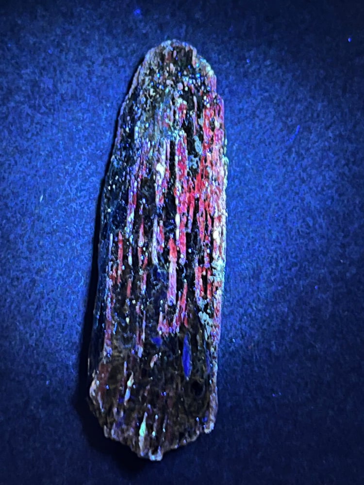 Kyanite & Muscovite UV Specimen from Strangways Ranges, Northern Territory Australia. This specimen glows red under UV Light photos have been taken using the Lumenshooter 365nm UV flashlight.