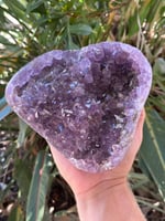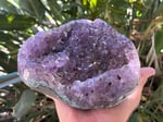 High grade large Brazilian Amethyst display piece with UV Calcite & polished edges.