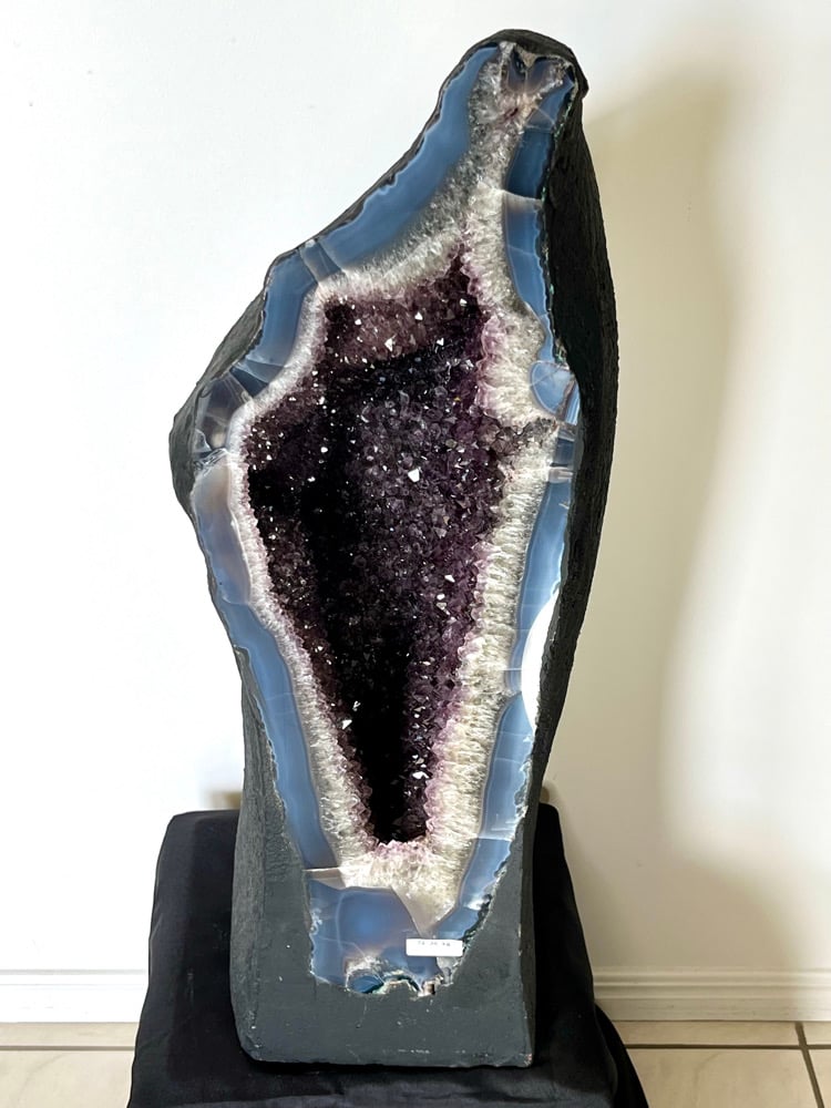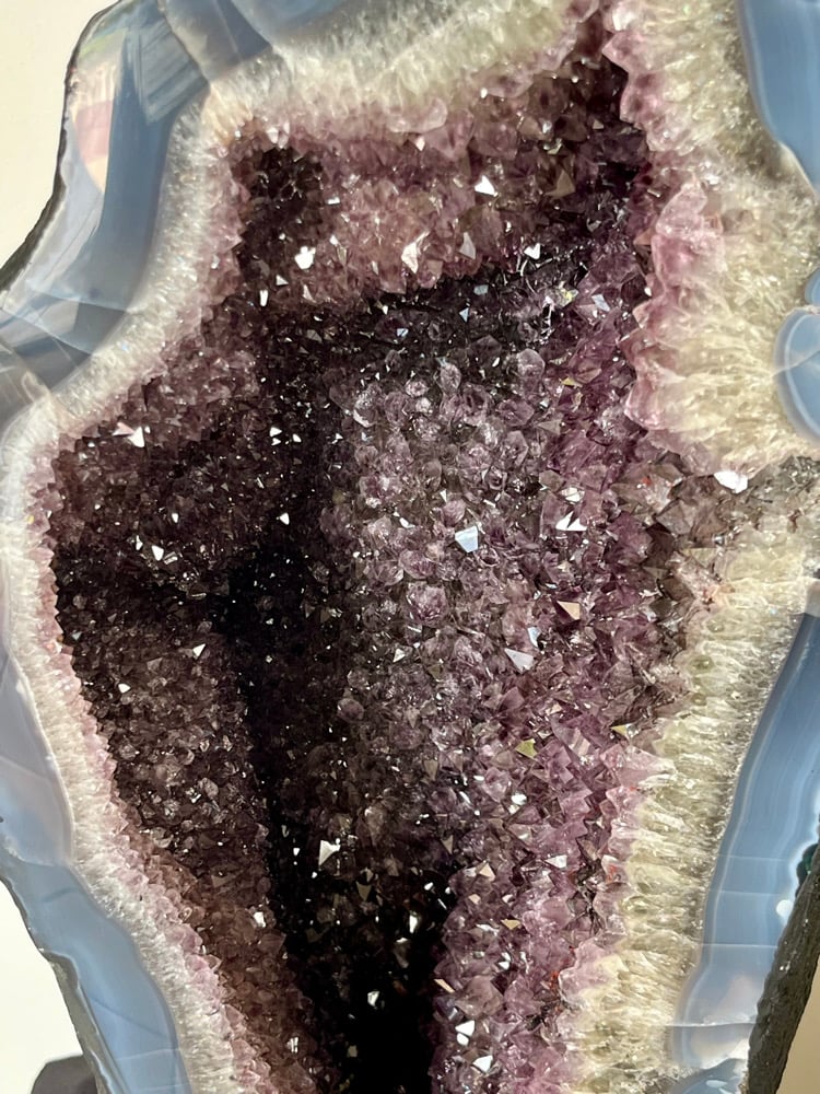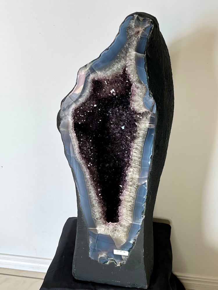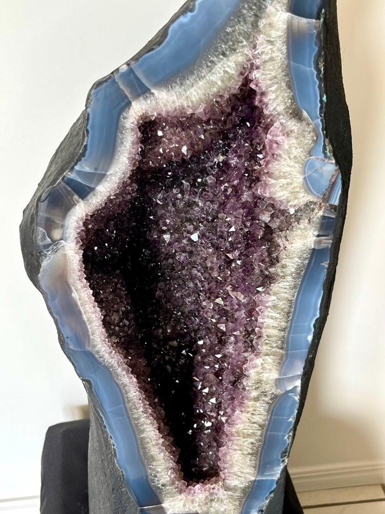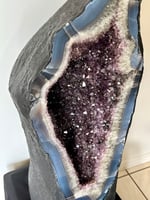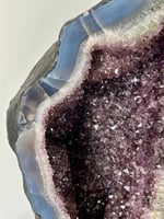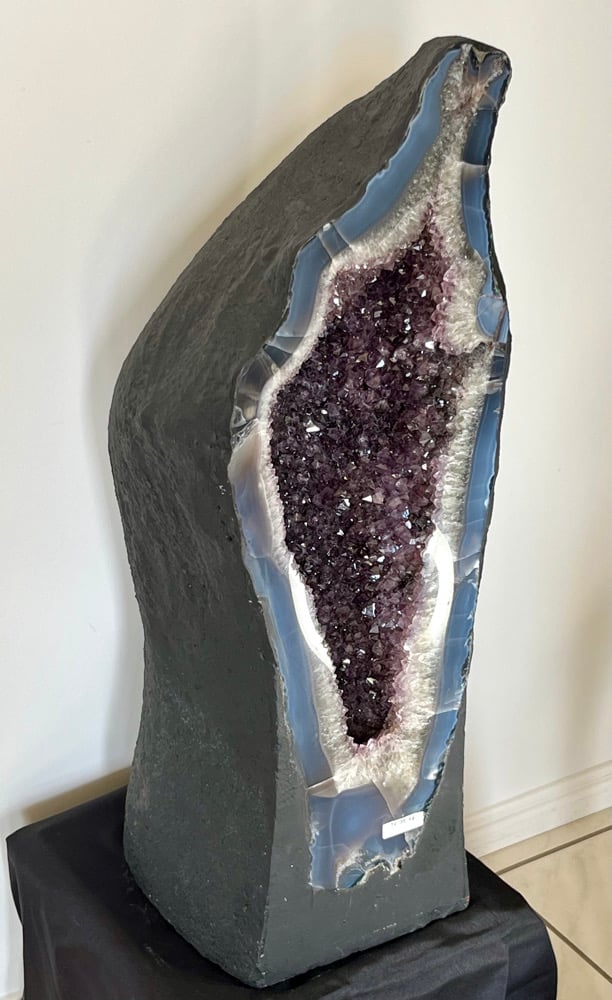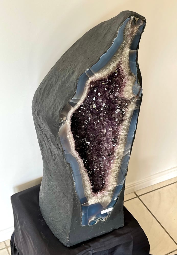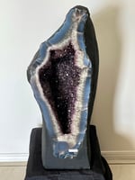 Large High grade Brazilian Amethyst Geode cave with polished Agate face statement piece.