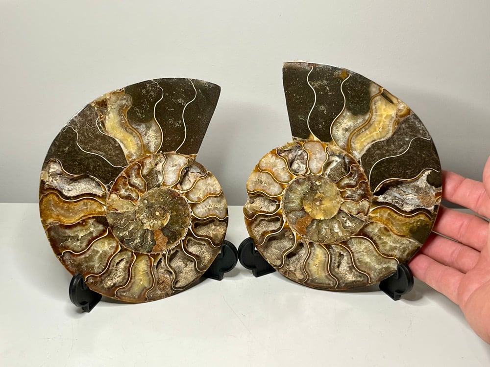 Large Display Ammonite shell Fossil pair from Madagascar display stands included.