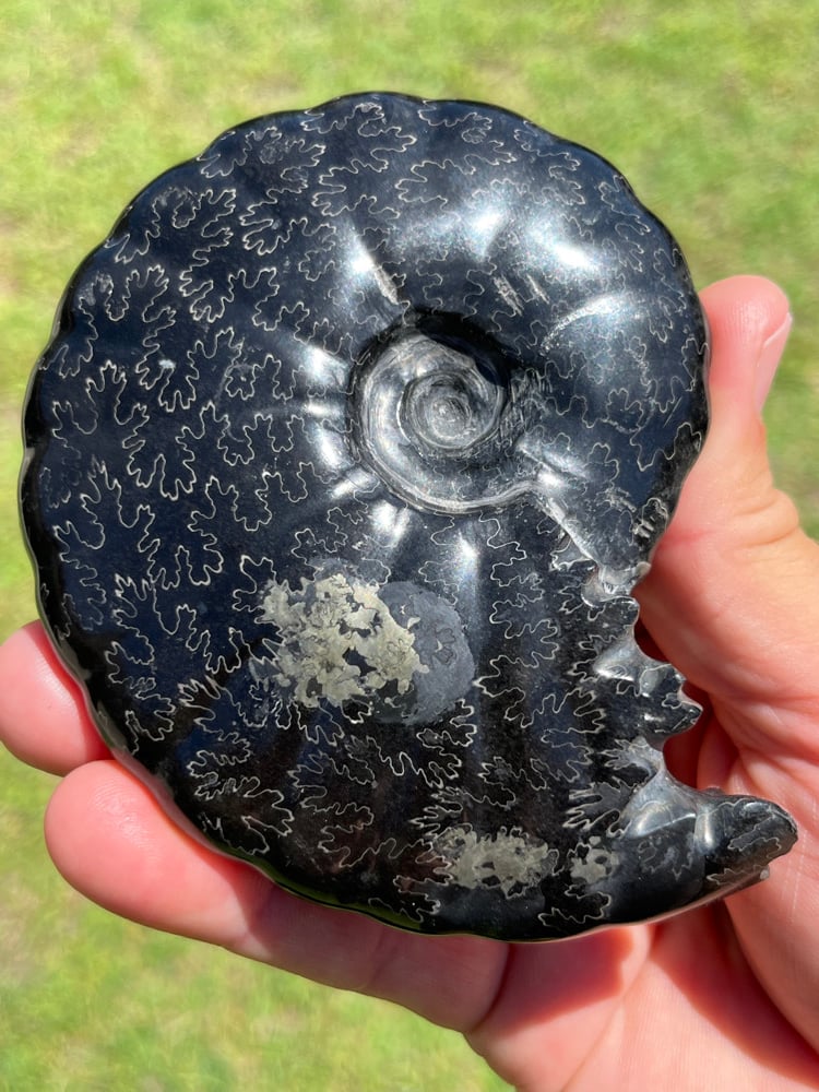 Black Ammonite Fossil With Pyrite | Madagascar #2706