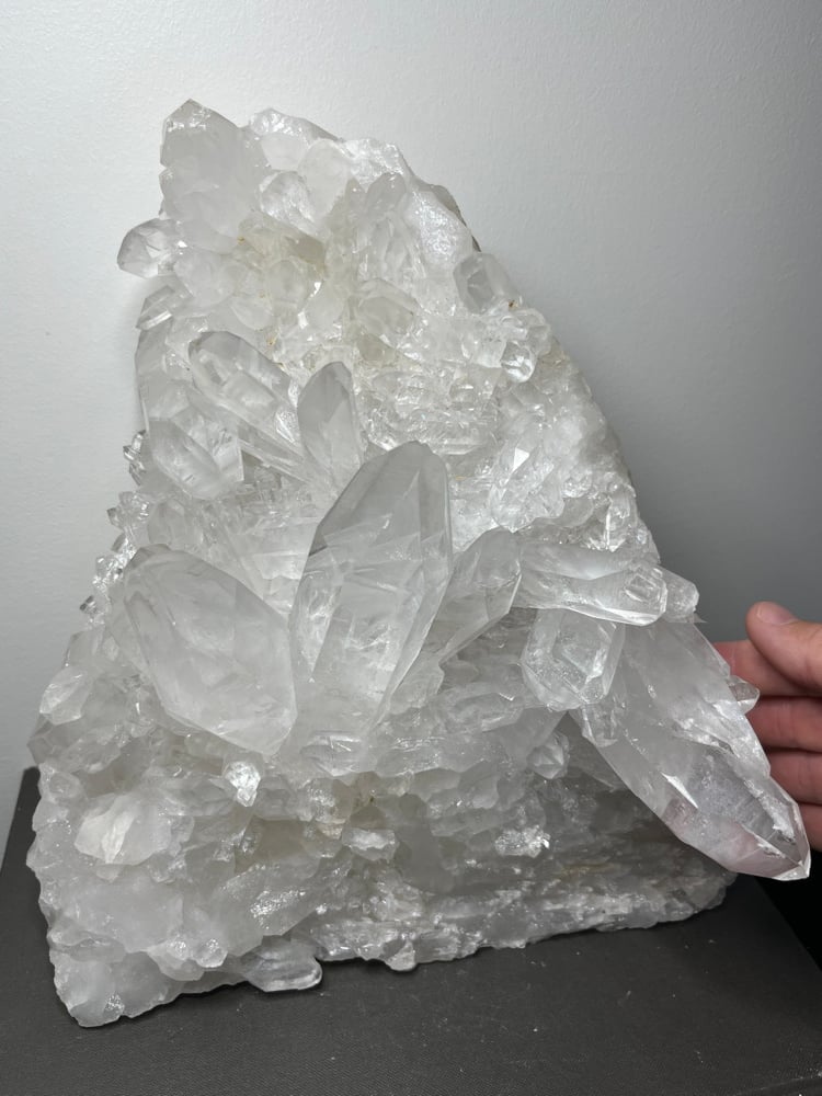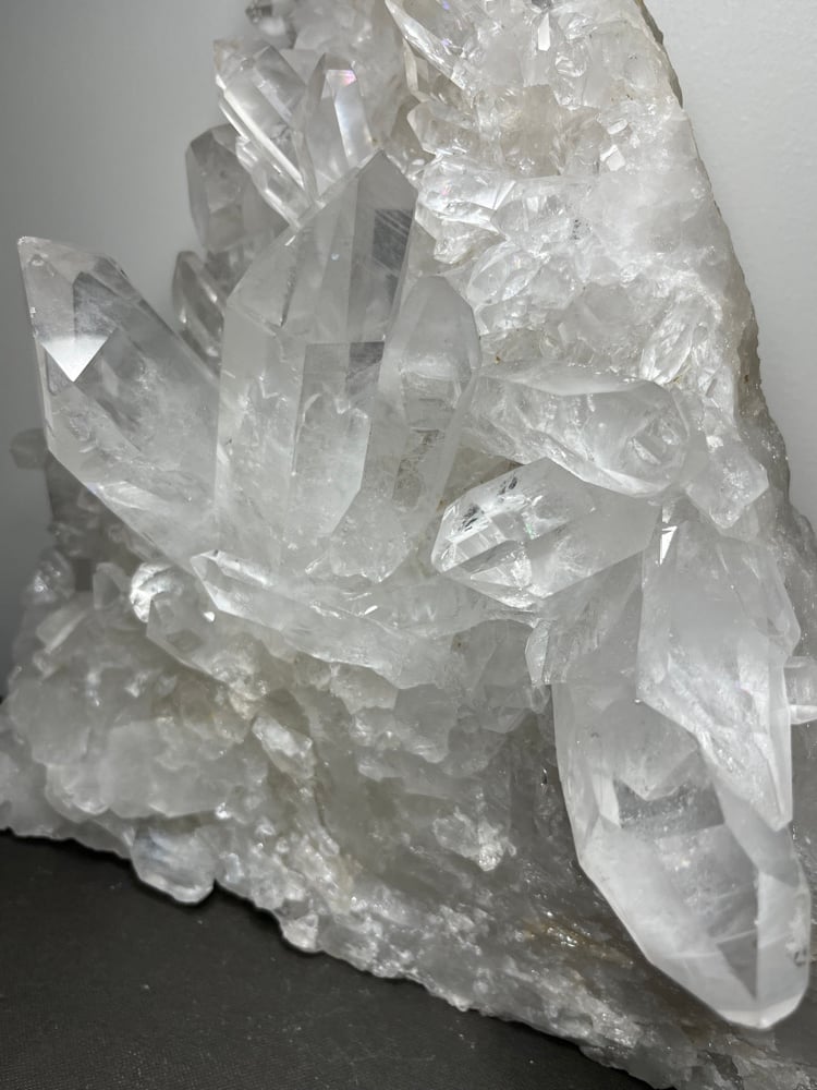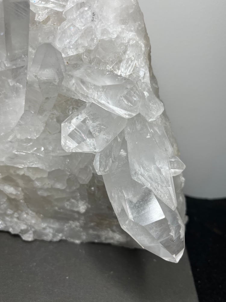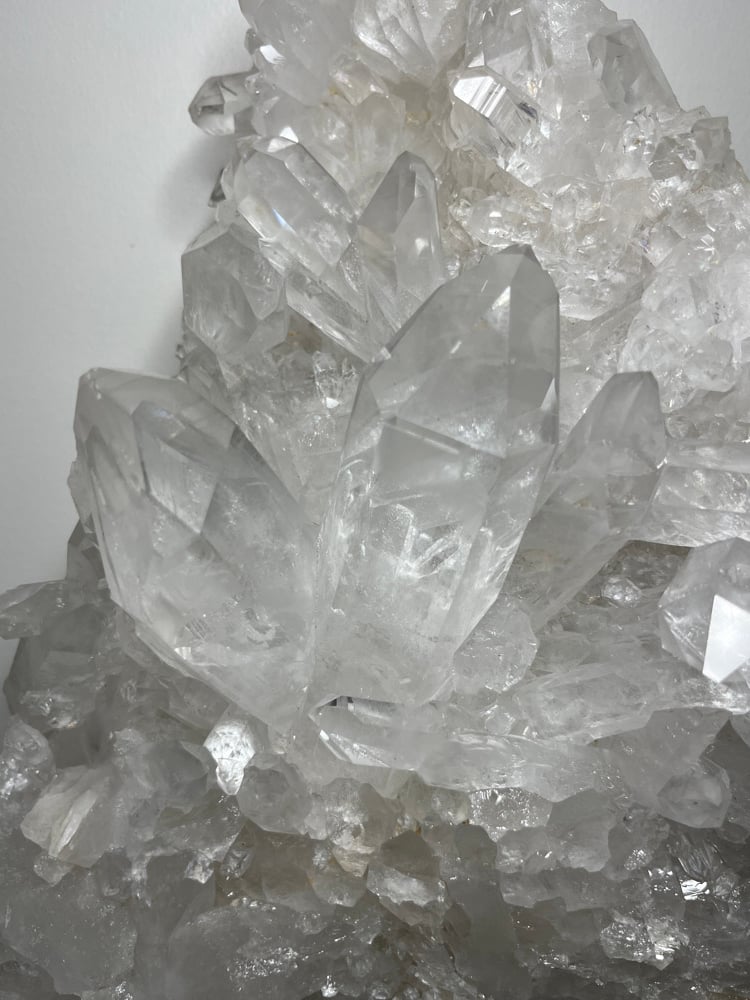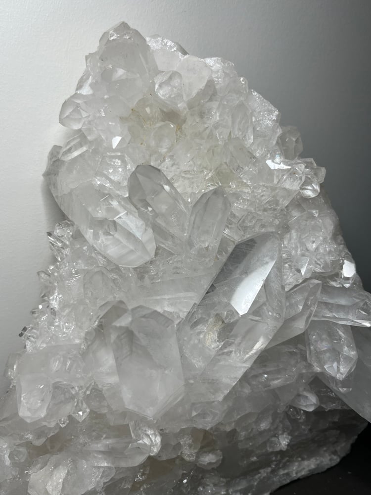 Large A grade Natural Clear Quartz points cluster double sided statement piece. This piece stands perfectly on its own to be displayed as shown in pictures.
