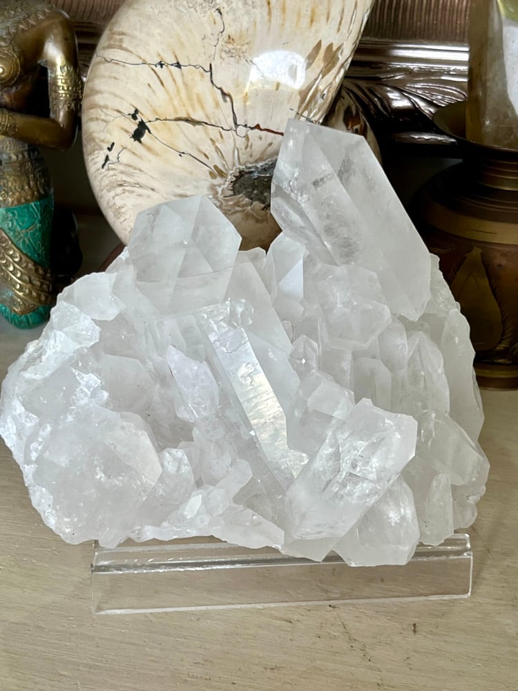 A grade Natural Clear Quartz points cluster display piece