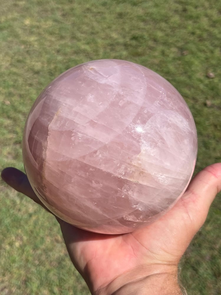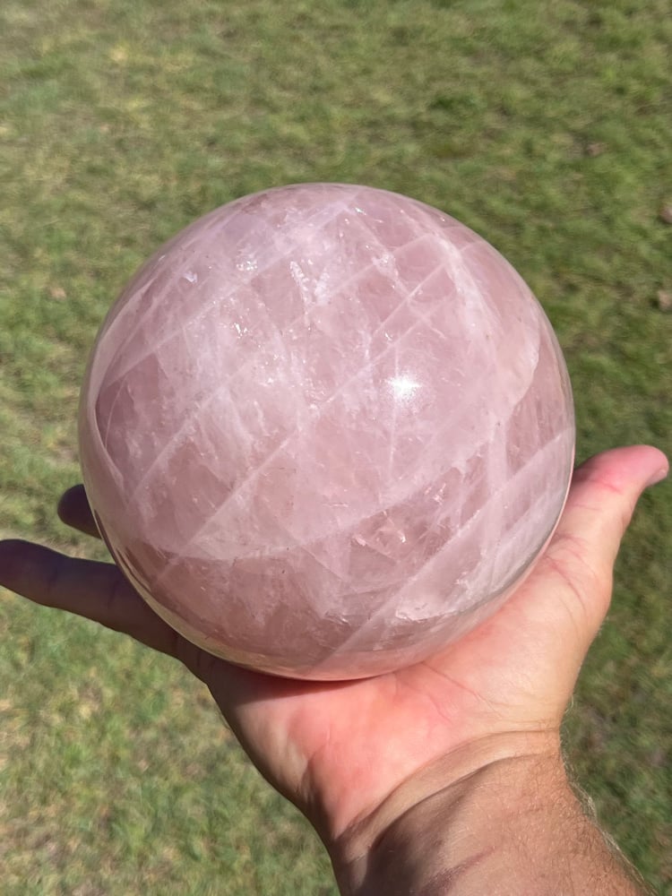 Large Madagascan Rose Quartz sphere display piece.