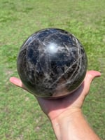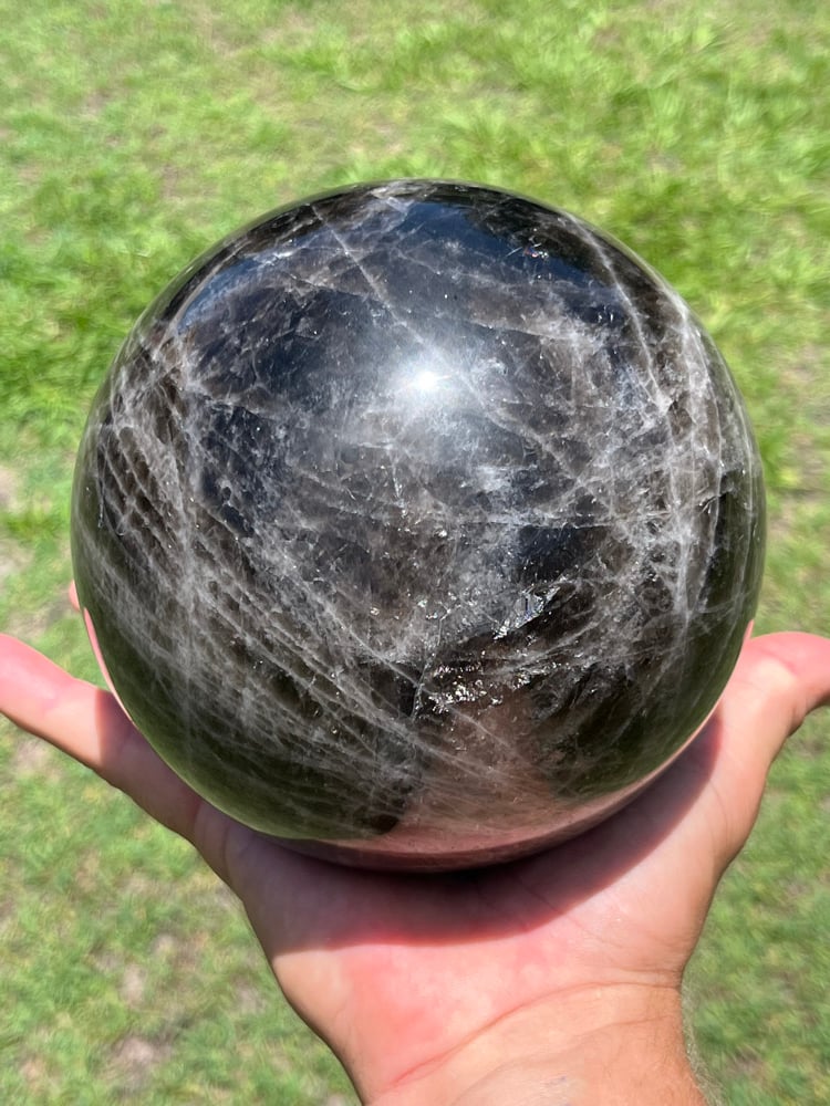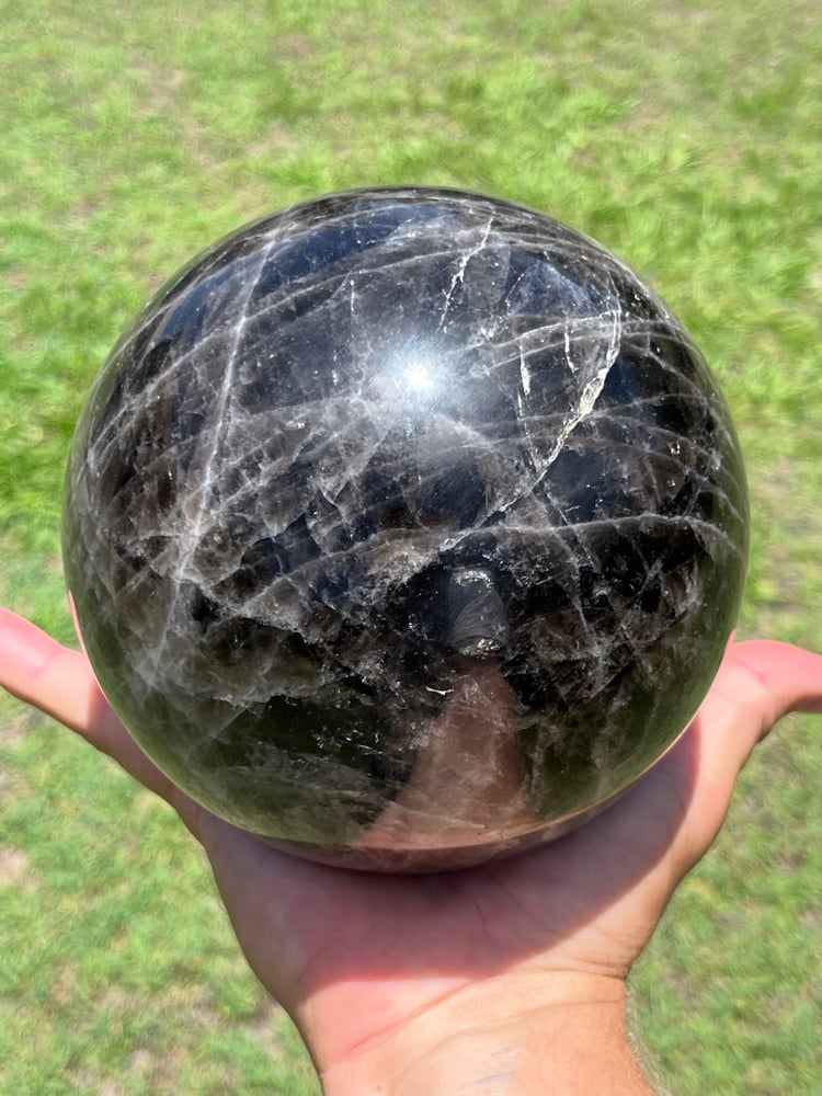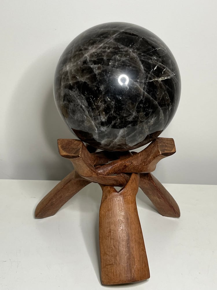 Large Smoky Quartz Sphere comes with wooden display stand.