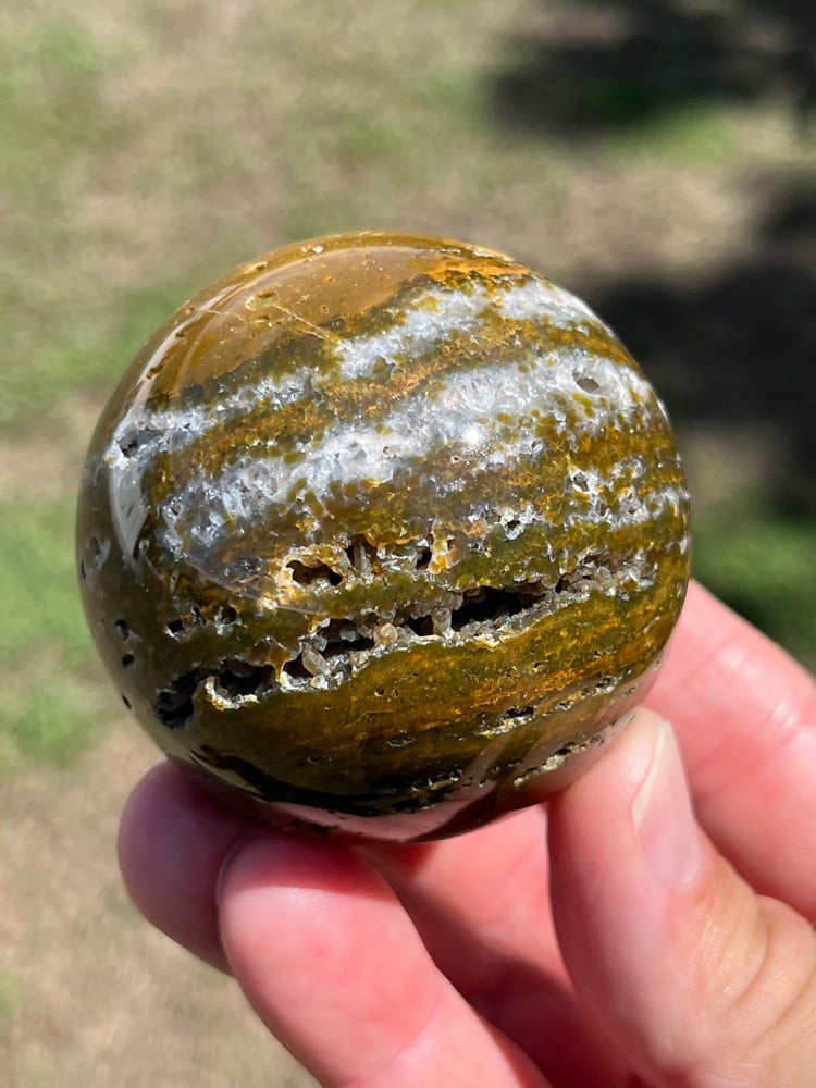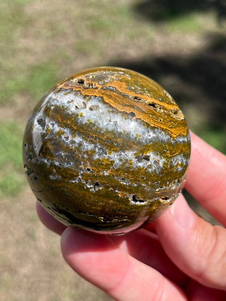 Ocean Jasper Sphere laced with druzy Quartz