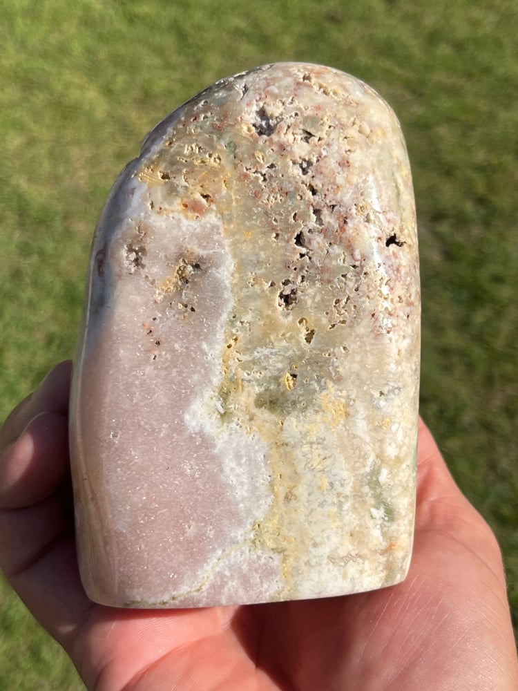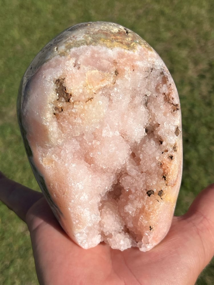 Pink Amethyst polished freeform with druzy centre