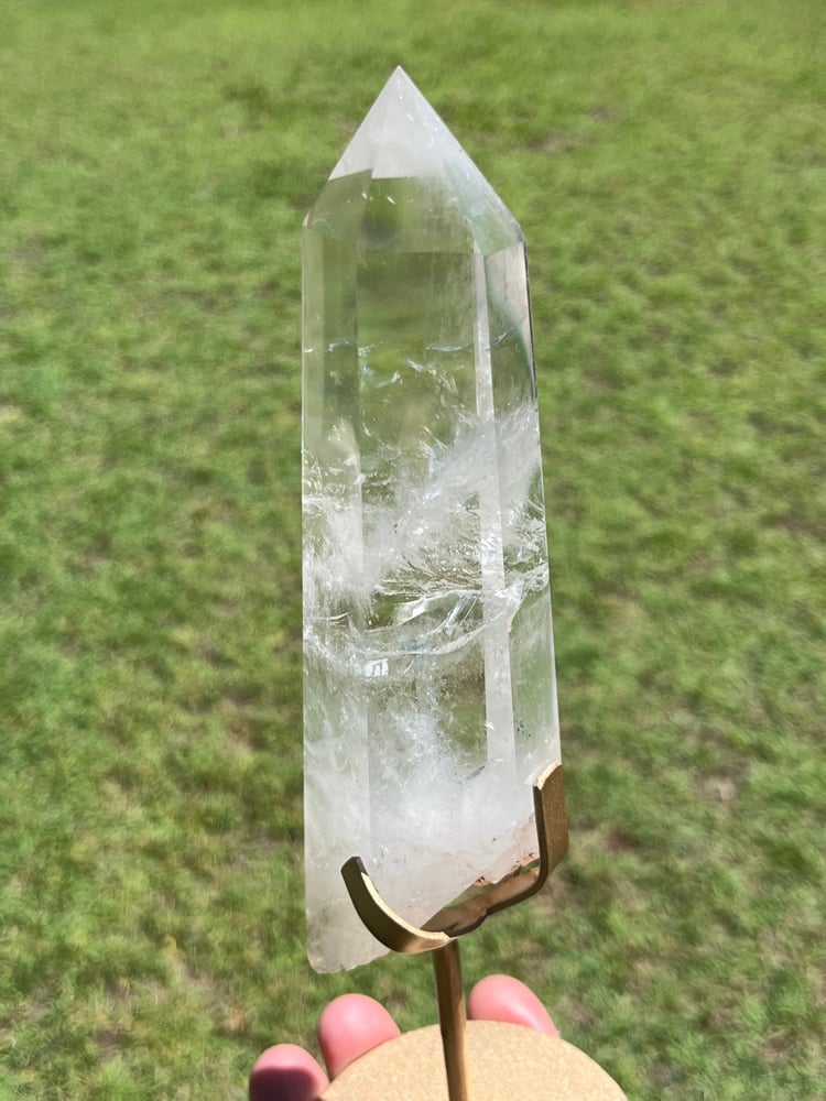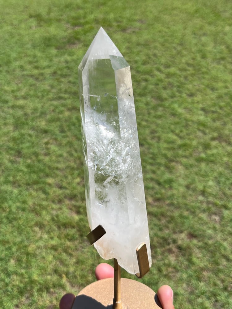 Polished Clear Quartz Crystal Point In Custom Stand #2901