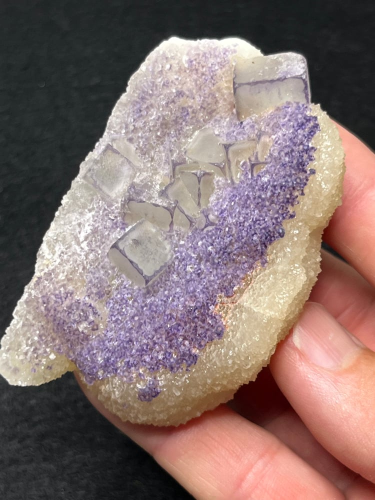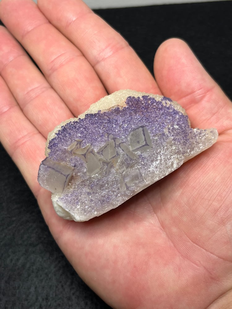 QR Code Fluorite on Druzy Quartz Matrix Specimen. From Guizhou Province China.