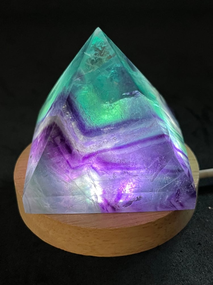 High grade Rainbow Fluorite crystal Pyramid looks amazing on LED light base.