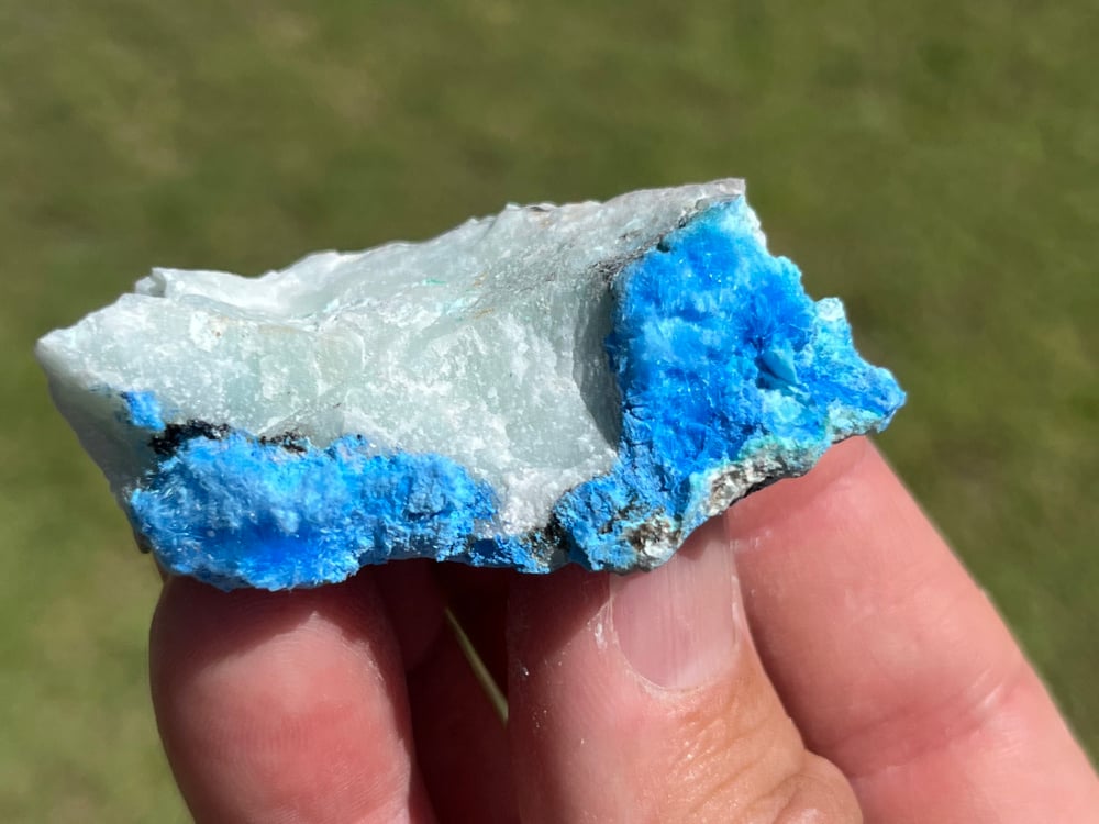 Cyanotrichite is a secondary copper mineral that forms in the oxidation zones of copper deposits, where copper-rich minerals weather and create delicate blue fibrous crystal sprays.