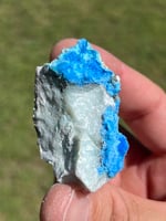 Extremely Rare Sky Blue Cyanotrichite Sprays on Green Fluorite Matrix Specimen. From the well known Qinglong Mine, Guizhou, China.