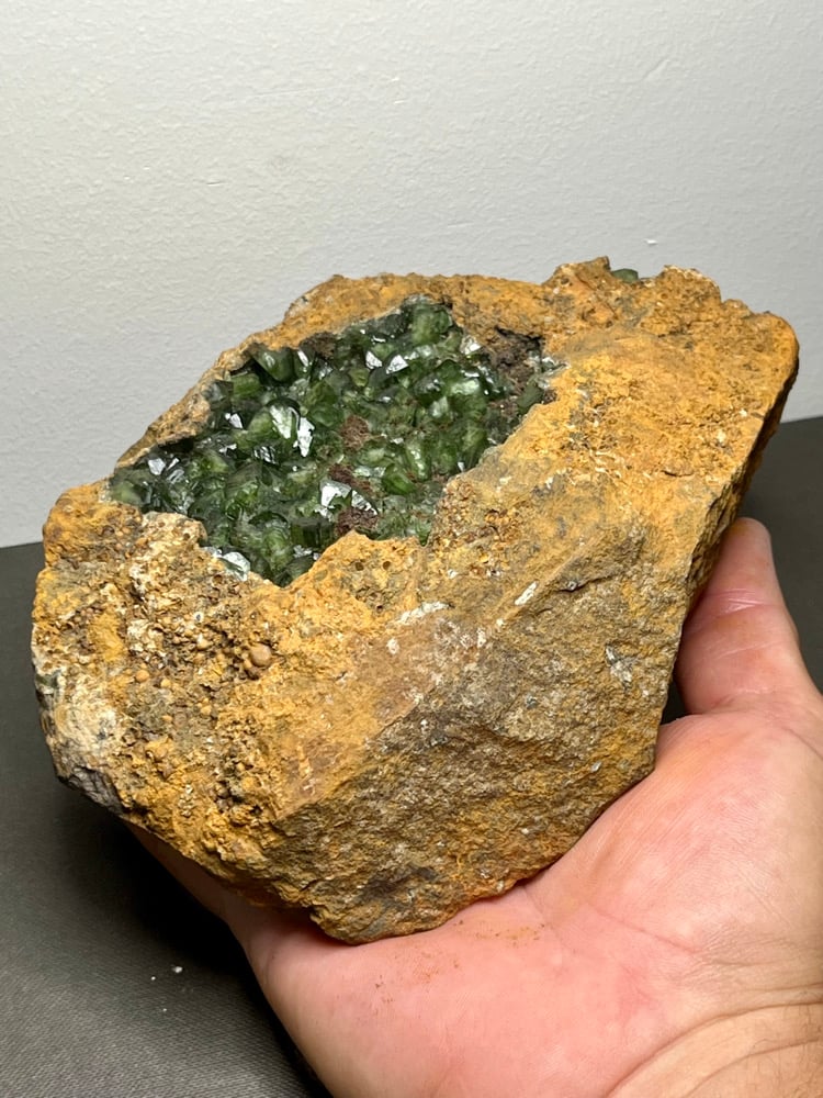 Rare Large Ludlamite Geode cluster specimen with vibrant Green Phosphate Crystals & amazing luster from Brazil