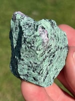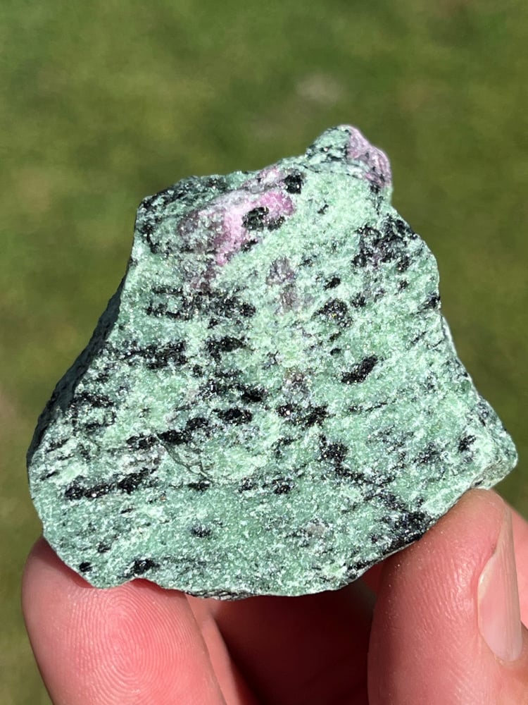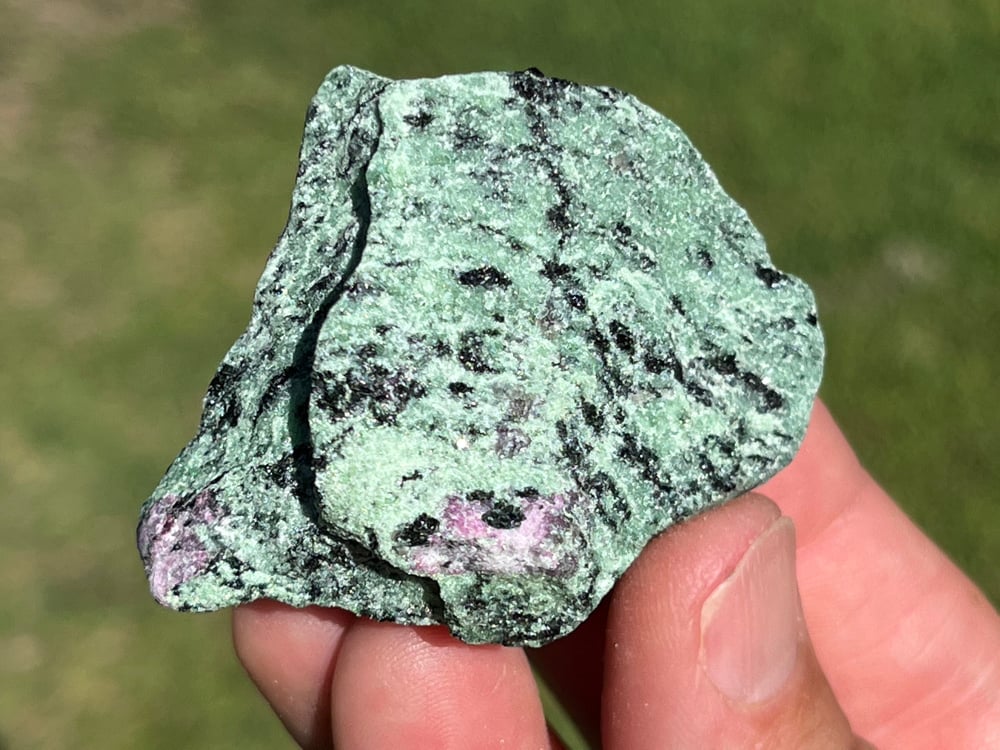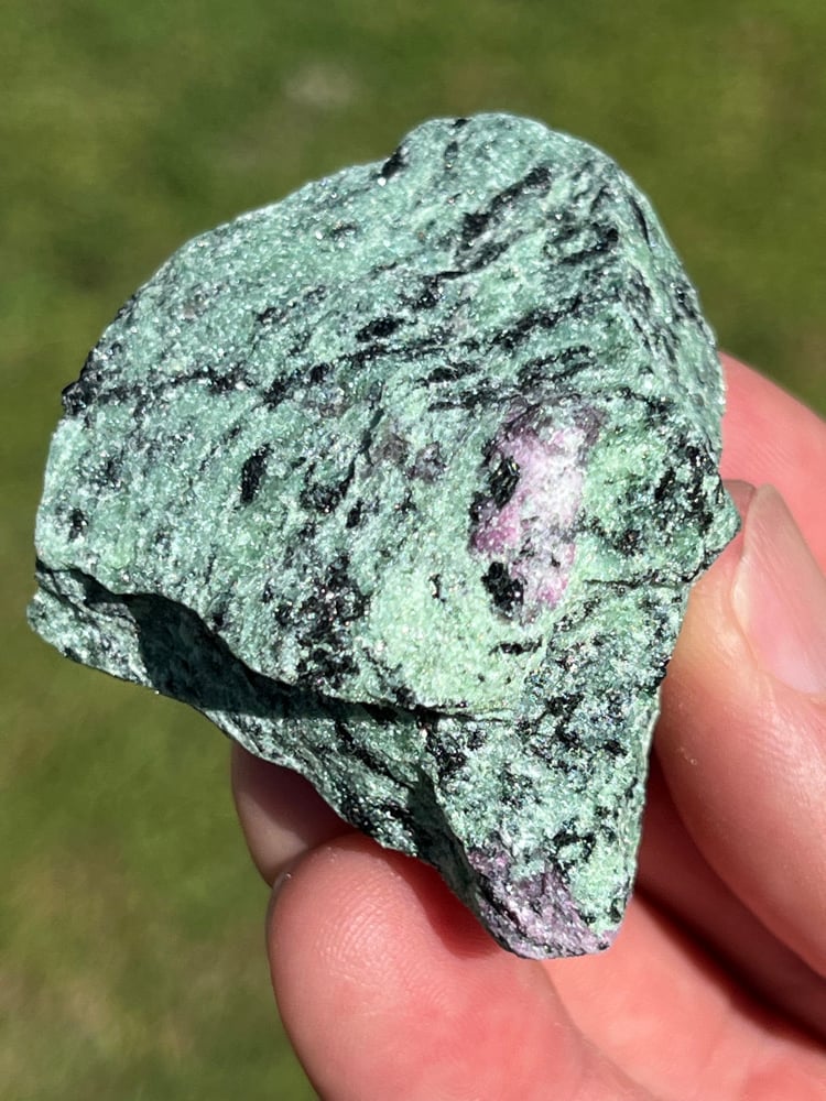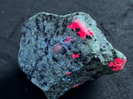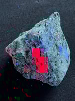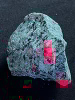 Ruby Zoisite Raw UV Specimen glows under UV light. Photos have been taken using the Lumenshooter 365nm UV flashlight.
