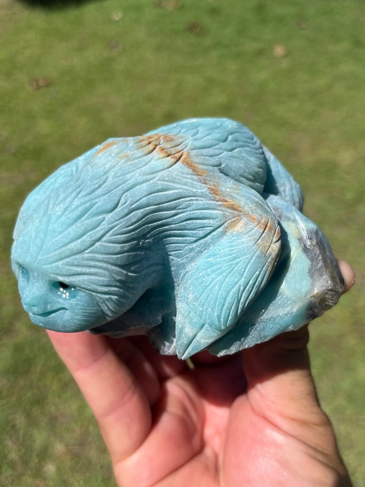 Sloth carved from beautiful vibrant Blue Aragonite crystal.