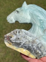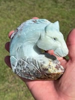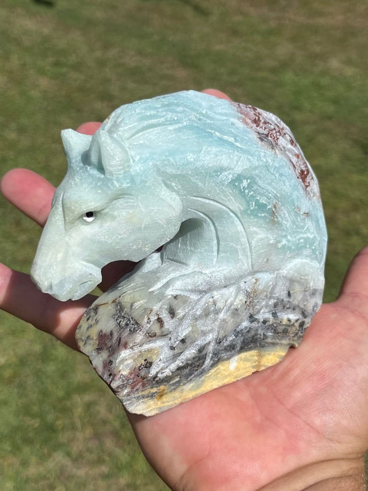 Beautiful vibrant Blue Aragonite hand carved Horse