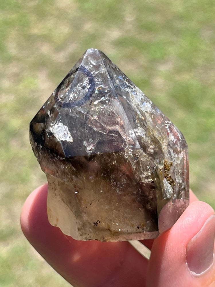 Smoky Quartz Enhydro featuring two moving bubbles inside these bubbles are most likely to be ancient water that has been trapped in the crystal millions of years ago.