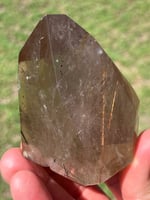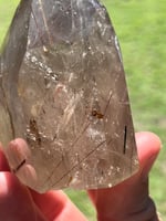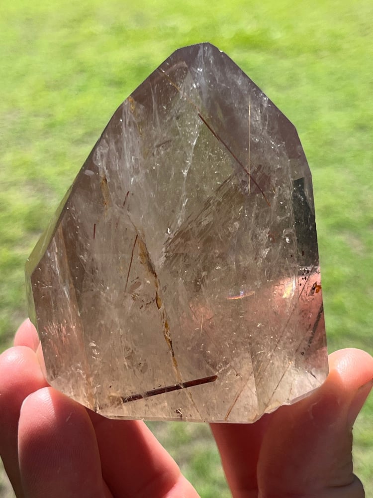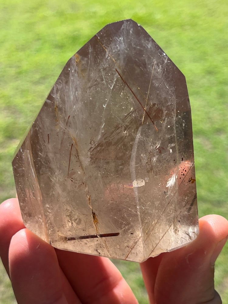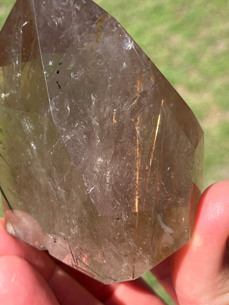Smoky Quartz Generator with Red, Gold, Silver & Copper Rutile Inclusions.