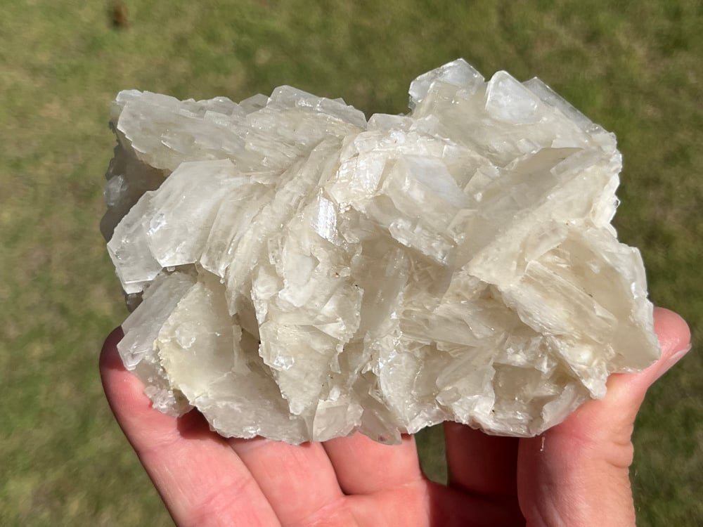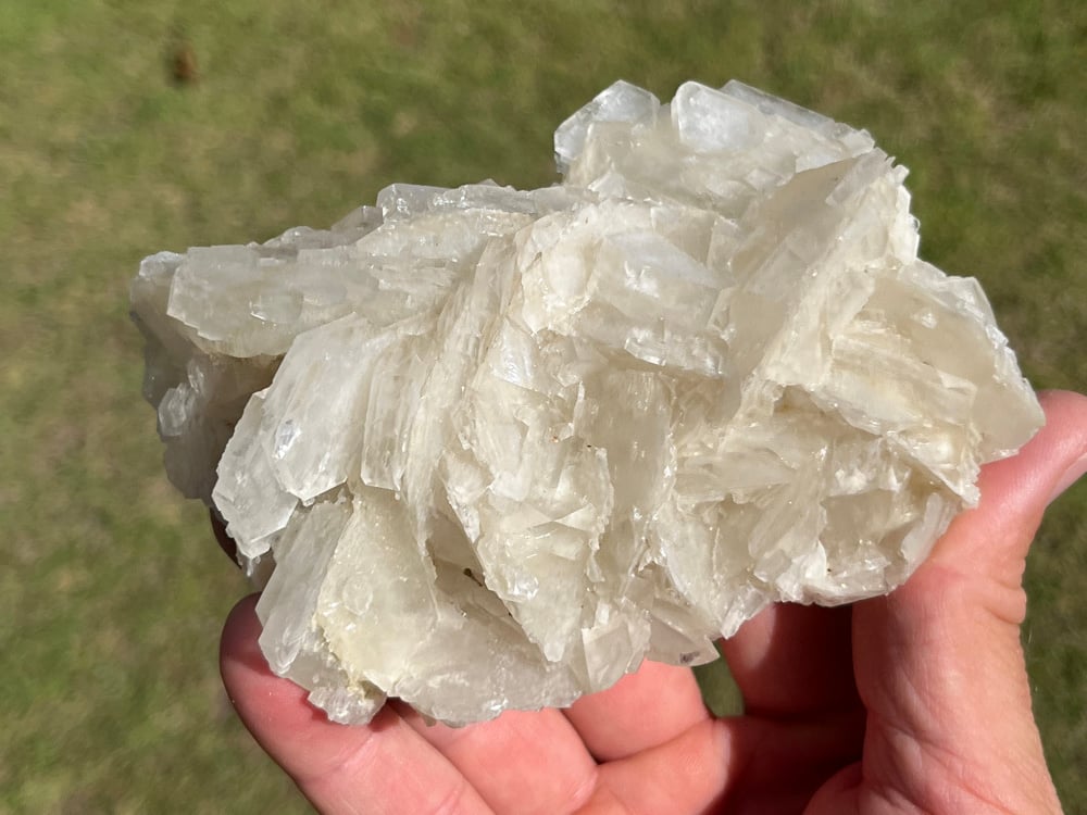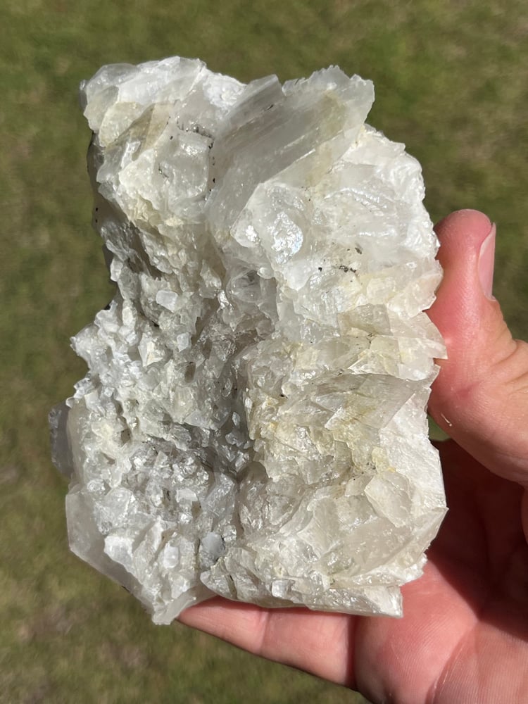 UV reactive Calcite specimen glows under UV light. Photo has been taken with the Lumenshooter 365nm UV flashlight.