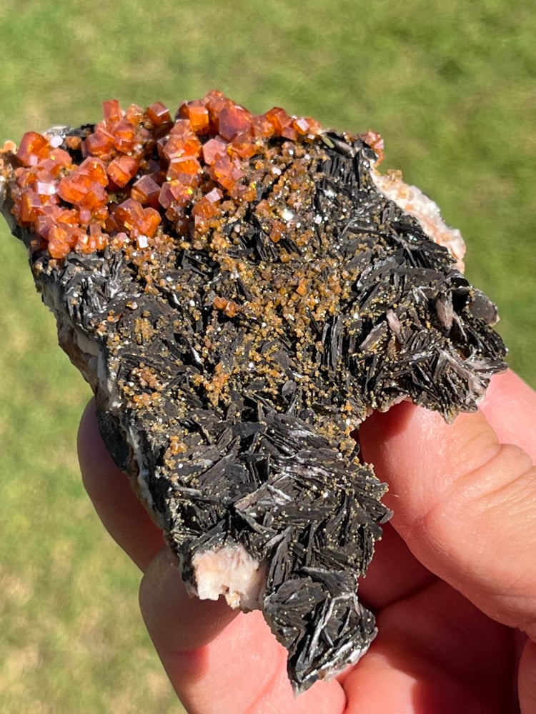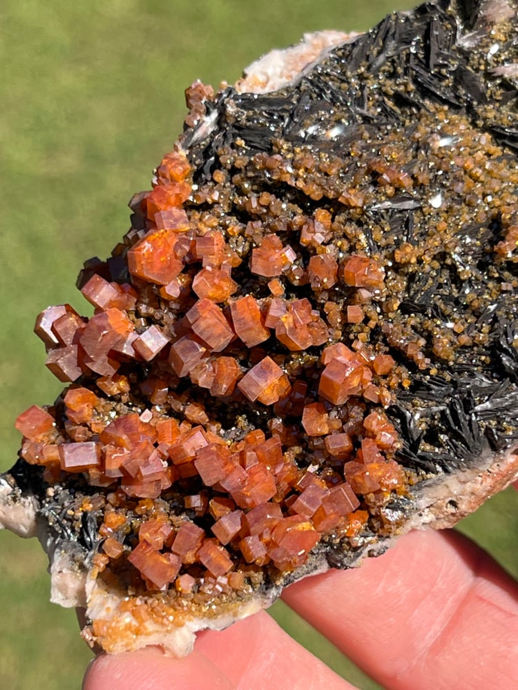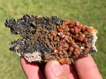 Vanadinite on black Barite specimen